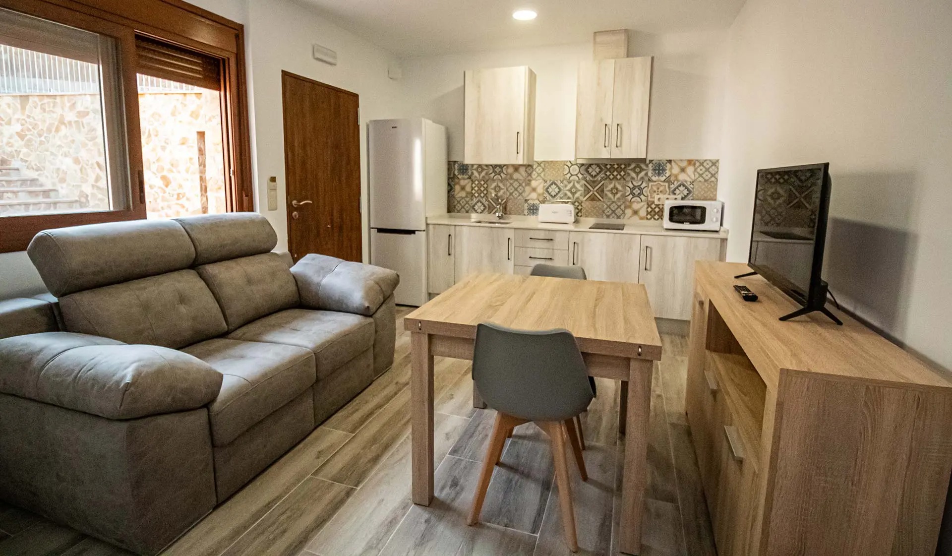 Totalmente acondicionado tanto para invierno como para verano, con Chimenea de leña, aire acondicionado y calefacción Pensada para que disfruteis de su comodidad y os sintais como en casa en cualquier época del año.